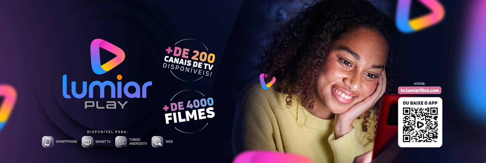 Com a Lumiar Play, você tem acesso à +200 canais de TV.